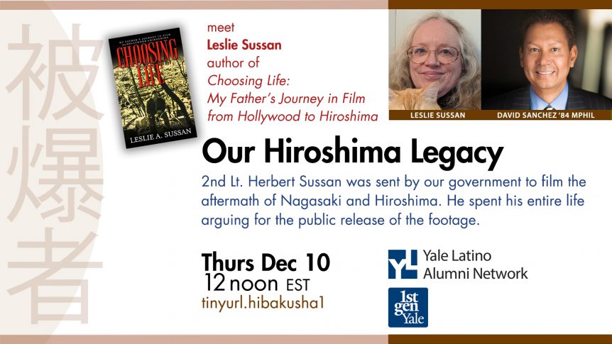 YLAN is hosting Leslie Sussan, author of Choosing Life: My Father’s Journey in Film from Hollywood to Hiroshima. We will be addressing the issue of legacy as a nation and …